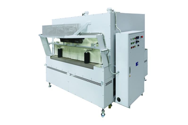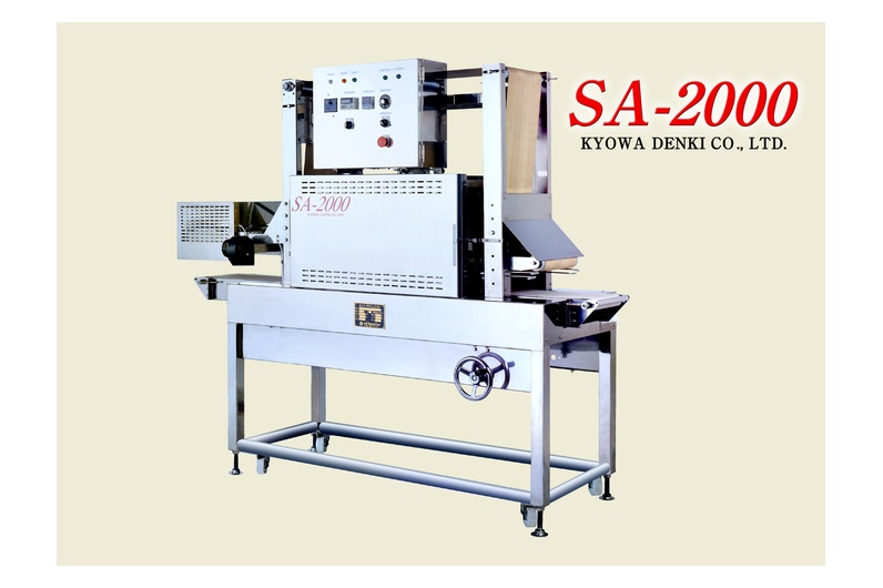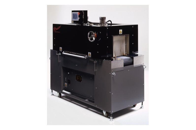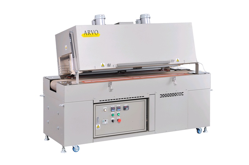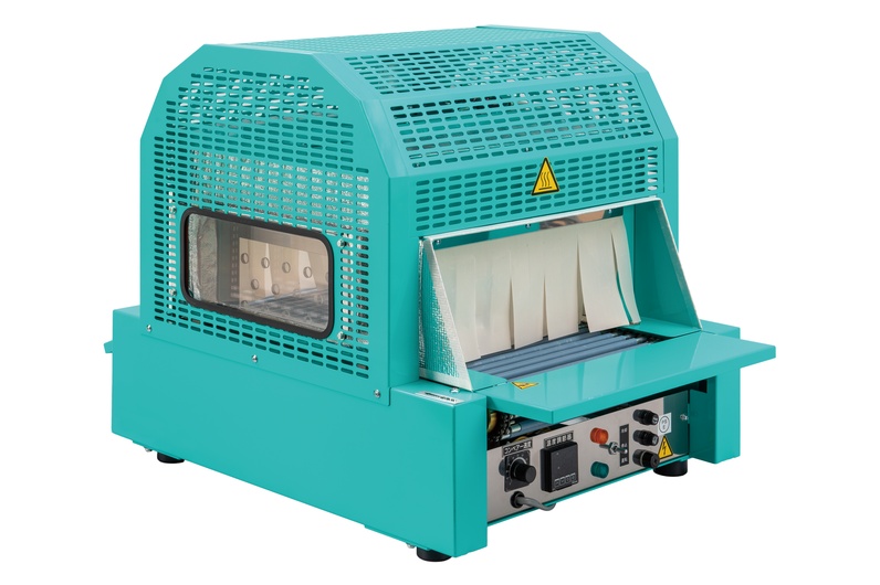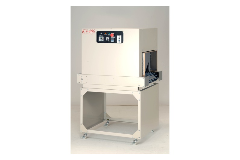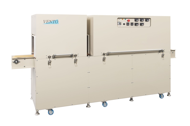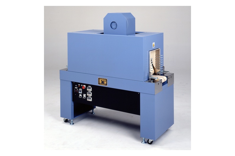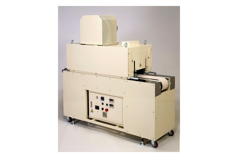 非塩ビ系素材P.E.TやP.Sの製袋品用のシュリンクトンネルです。 強力な熱風と独自の構造で美しい仕上がりを実現します